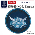 2024年3月に除籍された「掃海艇つのしま」の除籍記念ワッペンです。 【掃海艇つのしま】 すがしま型掃海艇の3番艇「掃海艇つのしま」の名は”一生に一度は行きたい絶景島”と言われる山口県下関市の角島に由来する。 2000年3月に就役し、2011年東日本大震災の際も横須賀から緊急出航し災害派遣にも参加。 2024年3月に除籍。 就役:2000年3月13日 除籍:2024年3月12日 総航程:247,440ML 大きさ:直径約10cm ※ ベルクロ付