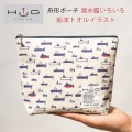 呉市在住のイラストレーター・船本トオル氏がデザインした様々な潜水艦をプリントした舟形ポーチ。