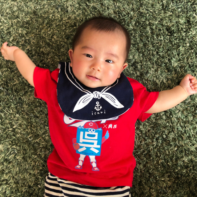 「ステッチハウス」オリジナルデザインのよだれかけ。