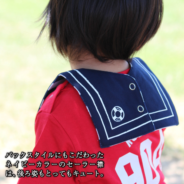 バックスタイルにもこだわったネイビーカラーのセーラー襟は、後ろ姿もとってもキュート。