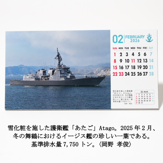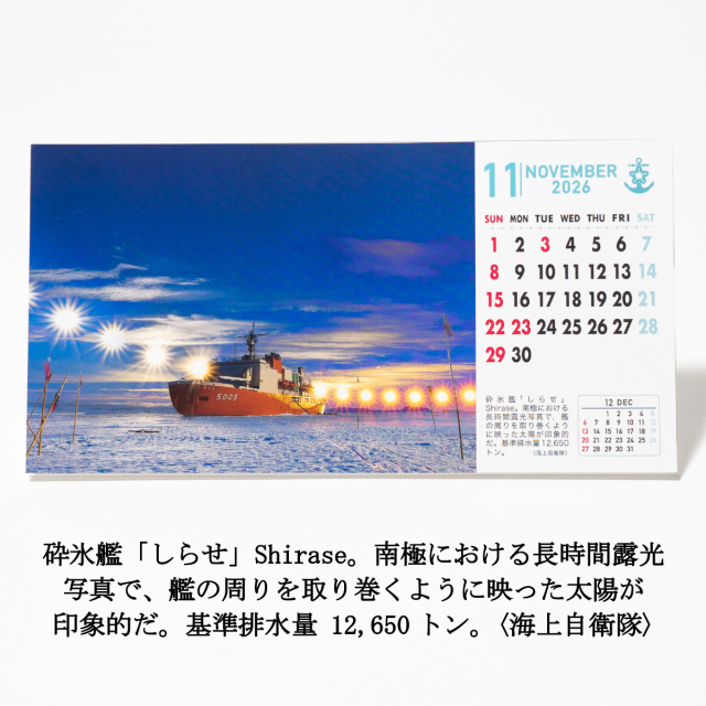 1957年に創刊された日本唯一の艦船総合情報誌『世界の艦船』が発行する「卓上カード型カレンダー(2026年)」です。