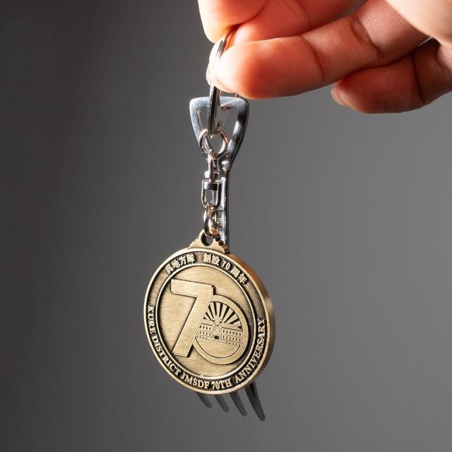 令和6年7月1日に創設70周年を迎えた「海上自衛隊呉地方隊」の記念メダルキーホルダー。