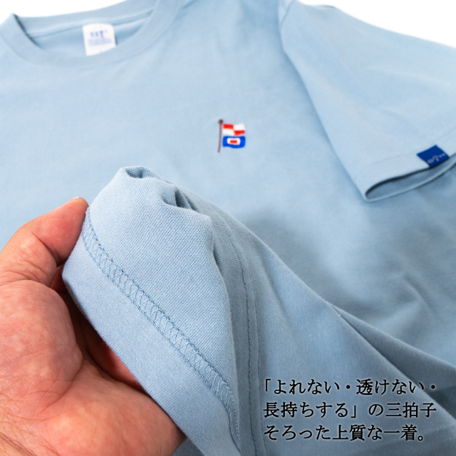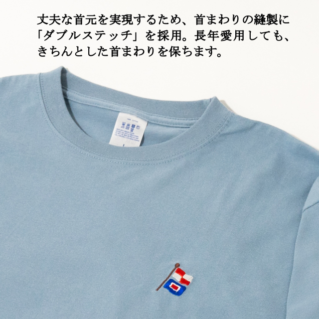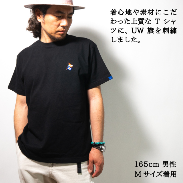 着心地や素材感にこだわった上質なTシャツに、風になびく「UW旗」を刺繍しました。