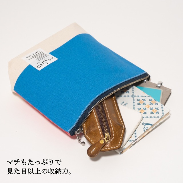 丈夫な生地を使い、丁寧にしっかりとした縫製で職人が一つずつ仕上げるので、長年愛用していただけるポーチに仕上がりました。